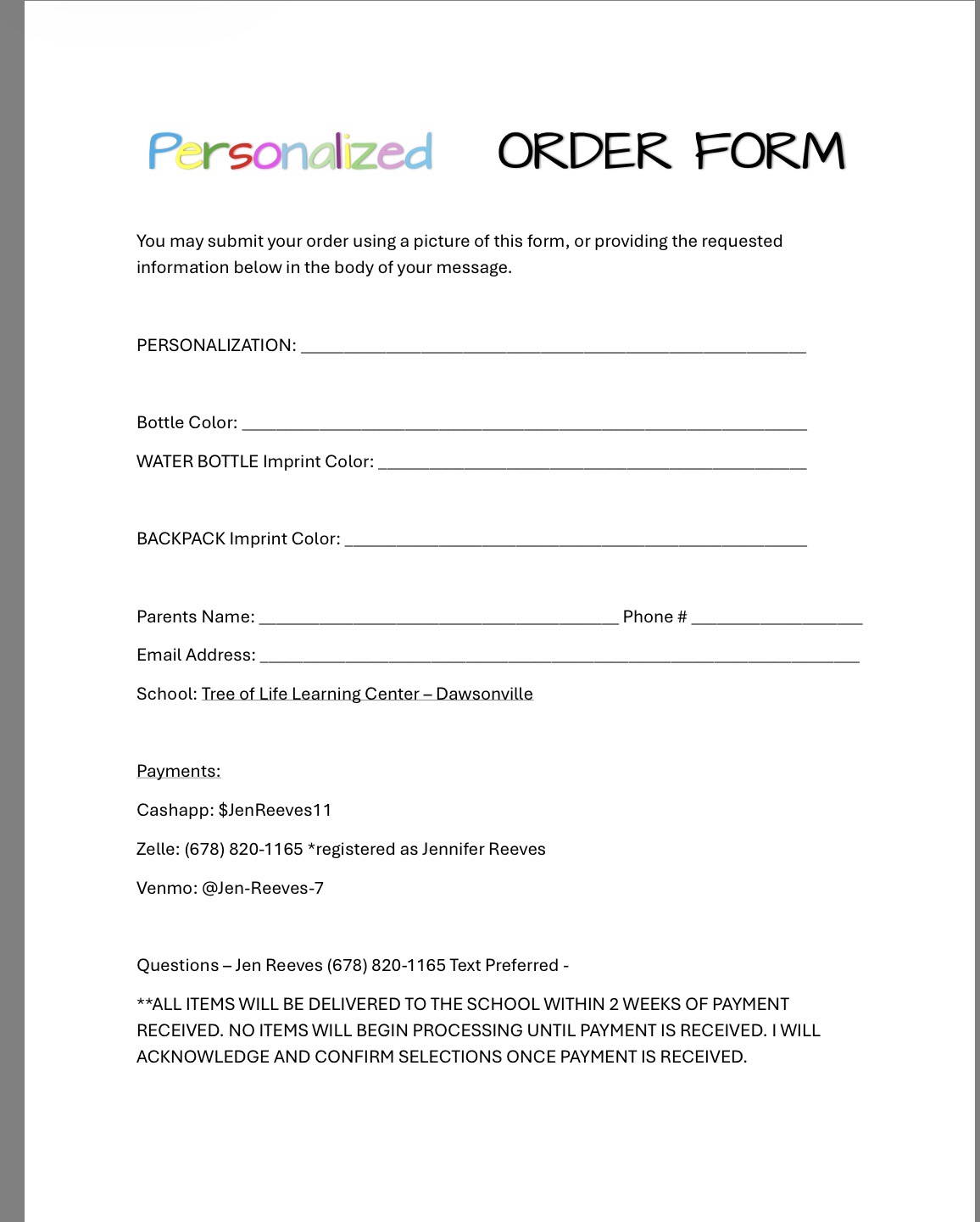 FILL OUT THE ORDER FORM & SEND TO THE INFORMATION PROVIDED ON THE FORM TO PLACE YOUR ORDER